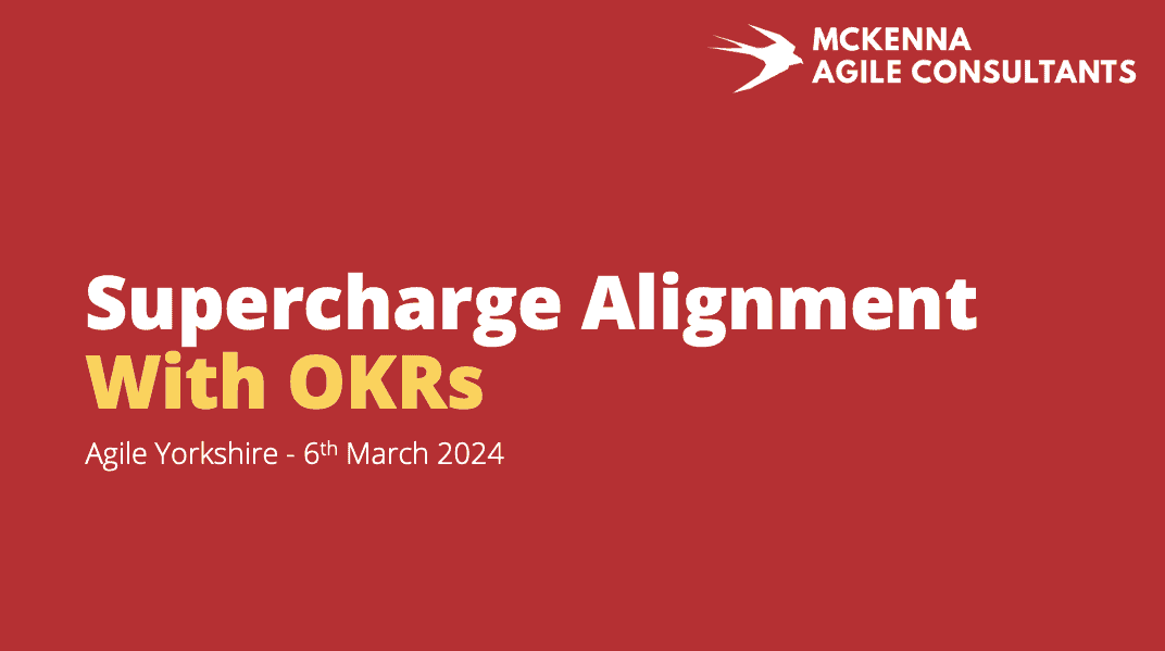 After an 8-year gap, we finally made it back to Agile Yorkshire in March 2024 where Aaron Mckenna delivered a talk on “Supercharging Alignment with Objectives and Key Results”. This talk gave practical guidance to people who were looking to know more about how OKRs can be a transformational tool in elevating your strategy execution.